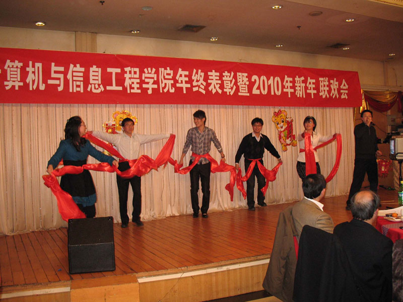 2009年12月30日,计算机与信息工程学院隆重召开2009年年终表彰暨2010年新年联欢会。孙宝国副校长、李朝鲜副校长莅临大会向获奖人员颁奖,并向大家表示亲切慰问和热烈祝贺。