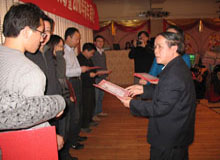 学院党总支书记曹显兵宣读了学院关于2009年度表彰先进的决定,会上表彰了一年来为学校和学院发展在各方面做出显著成绩的教学和管理人员,5个集体和30多位教师分别获得专业建设工作先进奖、教学优秀奖、科研贡献奖、优秀学术论文奖、国庆活动突出贡献奖、指导学生学科竞赛贡献奖、实验室建设先进工作奖、管理工作优秀奖,以及优秀班主任、工会活动积极分子称号。学院号召全体教职工在新的一年里继续发扬争先创优的精神,再接再厉,勇创佳绩,为学校和学院发展和实现教学科研转型做出新的更大的贡献。