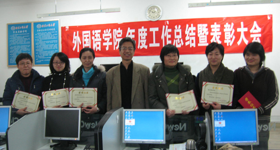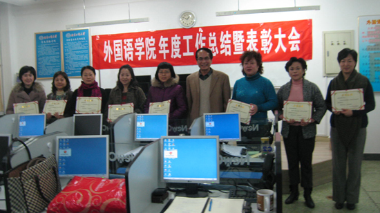 1月19日上午,外国语学院召开了2009年工作总结暨表彰大会,会议由工会主席沈湘主持,党总支书记闫冀生、院长杨怀恩,党总支副书记杨秀萍、副院长张卫晴及学院全体教职工参加了会议。