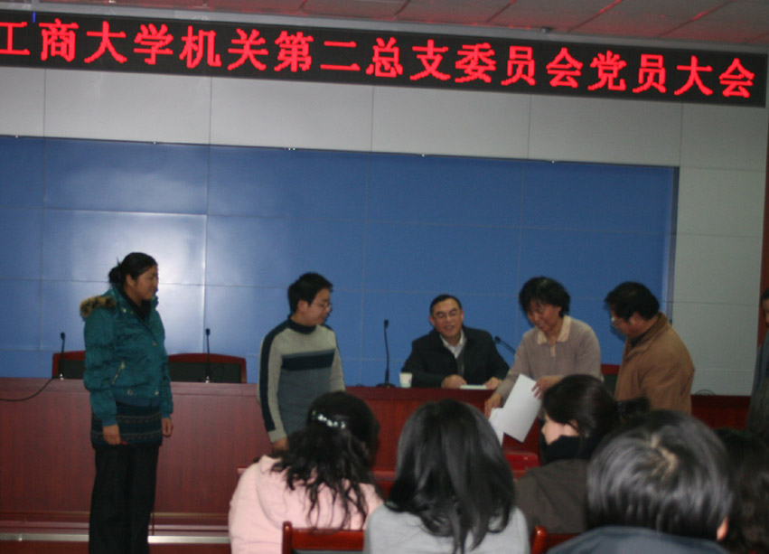 郭一行同志首先介绍了机关二总支成立组建的背景和过程,以及总支委员候选人的提名和酝酿情况,介绍了候选人简历。并提请大会通过了选举办法和计票人、监票人推荐名单。大会按照程序,以无记名投票的方式,选举产生了新组建的机关二总支第一届委员:郭一行、严书河、宋冬英、李艳芬、孔凡航、宋煜、赵丽君、杨本顺和房成鑫。郭一行代表新一届总支委员发言,指出机关二党总支在学校党委的正确领导下,奋力拼搏,锐意进取,将进一步加强组织建设,发挥党员模范带头作用,积极为教学科研和学校管理工作服务,同时也指出了机关工作存在的问题和今后努力的方向。