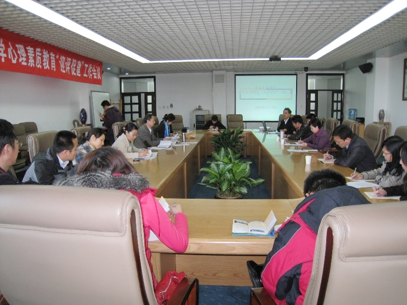 会议听取了中心主任林永和教授的心理素质教育迎评促建工作汇报;参观了大学生心理素质训练馆和心理咨询中心;校党委副书记卢思锋在充分肯定学校心理素质教育工作成绩的同时,强调了开展心理素质教育、学生心理疾病预防与危机干预的工作流程,要求认真执行班级、院系、学校三级心理疾病预防与危机干预工作预案,确保校园的安全稳定;学生处长吕素香传达了色情片市"5.25"大学生心理健康节开幕式的精神,并确定在4月15日下午2:00,在我校良乡校区大学生心理素质训练馆举办我校"5.25"大学生心理健康节开幕仪式。