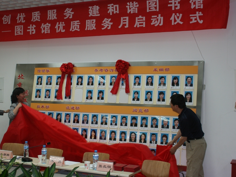 5月19日,以“创优质服务 建和谐图书馆”为主题的图书馆优质服务月活动在良乡校区图书馆116室正式启动。学校副校长李朝鲜、图书馆馆长高润芝、副馆长张长恒、商学院王真教授出席启动仪式并讲话。副馆长李艳芬主持仪式。