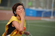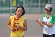 男子5000米比赛结束后不久,女子5000米比赛在15:35打响了枪声。16朵校园之花,为了希望,为了胜利,为了青春的梦想,奔跑在火热的红色跑道上。5000米长跑,磨炼的是非凡的毅力,较量的是超常的体力,拼搏的是出众的耐力。俗话说:“巾帼不让须眉。”而经济学院的李杨就是这样一位令人不得不佩服的铿锵玫瑰,她以23分30秒23的优异成绩卫冕冠军。计算机与信息学院的曹希和艺术与传媒学院的孙悦分别以25分11秒51、26分58 秒16的成绩获得第二名和第三名。无独有偶,李杨在整场比赛中同样采用了领跑的战术,并从一开始就将其他选手远远甩在了后面,由此可见她强悍的实力。“其实我以前从未参加过5000米的比赛,做出这样的选择主要是想尝试一下长跑,挑战自己、超越自己。”李杨以积极的态度,满含自信地说。