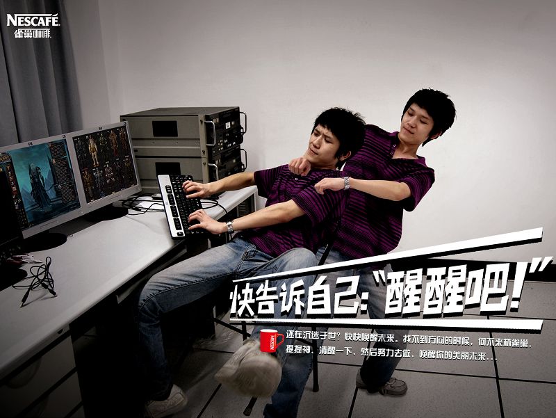 成功的道路总是充满荆棘的,他们也同样。在没有指导老师的特殊情况下,一切只能靠他们自己解决。灵感是有了,可创作中依旧遇到了不少困难。三张作品,三个场景,三个人组成了这三道难题。第一个难题是最基础的,也是最棘手的,那就是道具问题。动手实践总是艰辛的,没有拍摄工具,没有道具,也就无法实现梦想的创作。就在他们焦急万分的情况下,艺术楼B座的工作人员终于慷慨解囊,提供了摄像和其他制作道具,解决了问题。然而道具的齐全又引发了第二个难题,因为拍摄的作品需要三个不同的场景,开始进展的很顺利,自习室和机房这两个场地被很快搞定,可是,最后需要拍摄打牌篇时要在龙月餐厅二楼拍摄,而餐厅负责人并不买账,最后在他们协商了很久后,并且保证不影响学生用餐的情况下,龙月餐厅的拍摄场地被终于拿下。万事必备后,第三个难题就是演员问题,于是他们当即决定“不浪费一草一木”而自编自导自演,三个人轮番上阵恰巧一人一篇。王龙龙在回忆起当时的情形时笑着回忆道:“关于我的那篇,在拍摄时拍了不下十遍,一副图两个动作,摆表情摆的脸都僵了。”就这样,一路走来,经过了两个星期的时间,这个雀巢咖啡(打瞌睡篇、打牌篇、游戏篇)的创意作品终于出炉了。