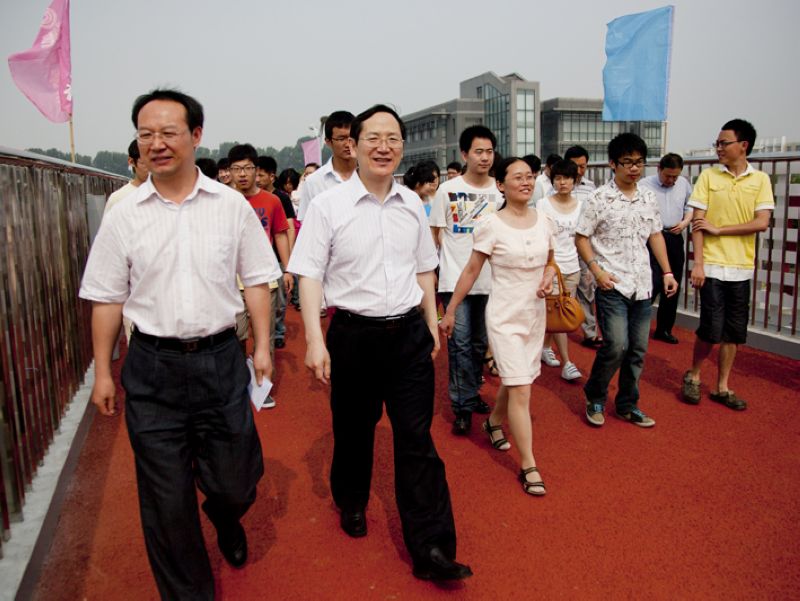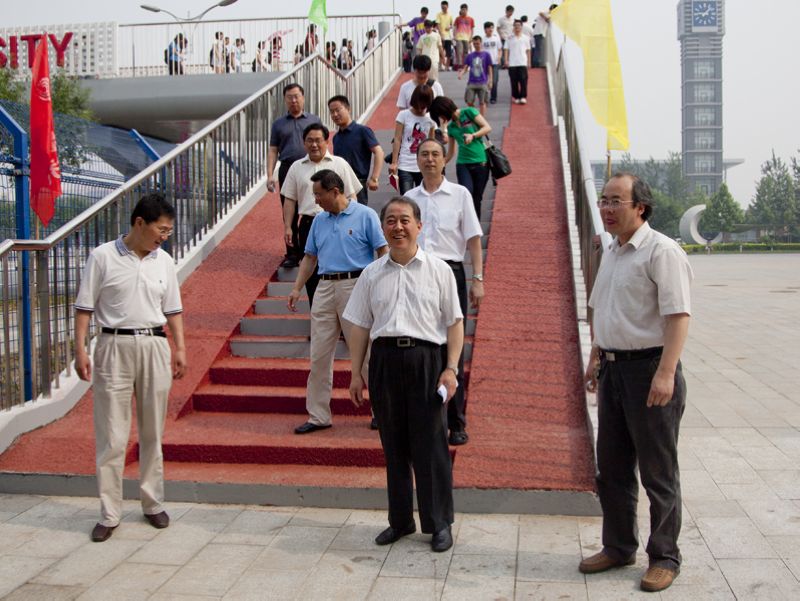 6月8日,我校良乡校区阳光大街过街天桥竣工仪式在天桥的西起点(行政楼前小广场)举行。
