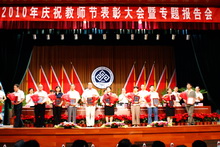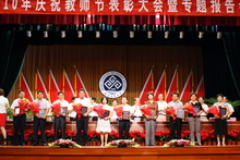 校党委副书记、纪委书记张德玉宣读了学校表彰决定,并宣布受表彰教师及从教满30年教职工的名单(详见附件)。在欢快的乐曲和热烈的掌声中,受表彰的教师们依次登台接受领导颁发的荣誉证书和学生代表敬献的鲜花。