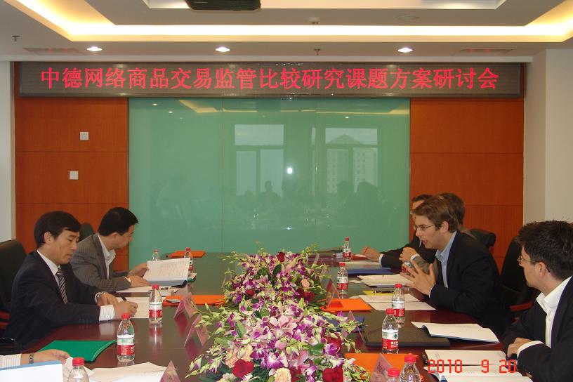 9月20日的会议主要为该项目的专家研讨会。该项目分为三个子课题,即中德网络商品交易监管体制机制比较研究、中德网络商品交易监管法律制度比较研究、中德网络商品交易监管消费者权益保护比较研究。两国专家就三个子课题的研究方案进行了详细的讨论。9月21日中方和德方领导分别致辞,表达了对此次会议的支持以及对该研究项目的信心。该项目的主要专家分别就项目的研讨方案发表了自己的意见和看法。专家顾问也结合各自的专业领域对该项目研究方案给予了参考意见。最后,中德双方专家就彼此提出的研究设想进行讨论,确定了该项目的最终研究方案。会议强调中德双方专家分工明确,各司其职,协力合作完成本次项目任务。