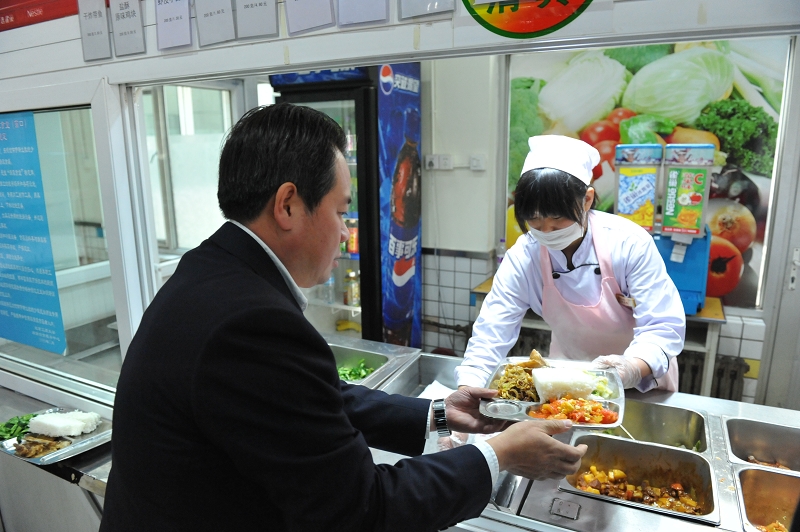 中午1210,专家组在校领导及相关部门负责人陪同下走访学生食堂并在学生食堂用餐,了解我校食堂就餐条件、就餐环境、用餐价格等。