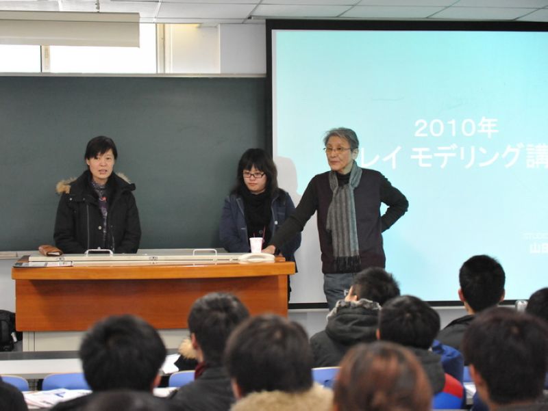 12月17日下午两点,我校良乡校区艺A-102教室座无虚席,由学校教务处和艺术与传媒学院共同主办的日本著名工业设计师、汽车模型师山田泰里先生的“现代汽车企业模型制作流程与方法”的讲座在此举行。山田泰里(Yamada Yasusato)先生系原日产汽车公司造型室负责人、世界著名汽车模型师,曾多次被国内外多所高校聘请讲学,并被国内著名汽车企业聘为设计顾问,著有《Clay Modeling》、《Rhino 3D Modeling》等著作。