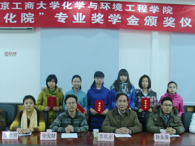 两家奖学金捐赠单位代表、领先特品公司凌峰经理和中国日化院李秋小副院长分别为获奖学生颁奖,并亲切地和获奖学生合影留念。应化071班的梁森同学和应化081班的沈青霞同学分别代表两个奖项的获奖学生发言,感谢两家捐赠单位长期给予我校应用化学专业大学生的关怀和激励;决心继续努力,全面发展,不负期望,以更加优异的成绩回报领先特品和中国日化院爱心人士的厚爱;表示将永怀一个感恩的心,用自己的切实行动把教育捐助和奖优助困传递下去。