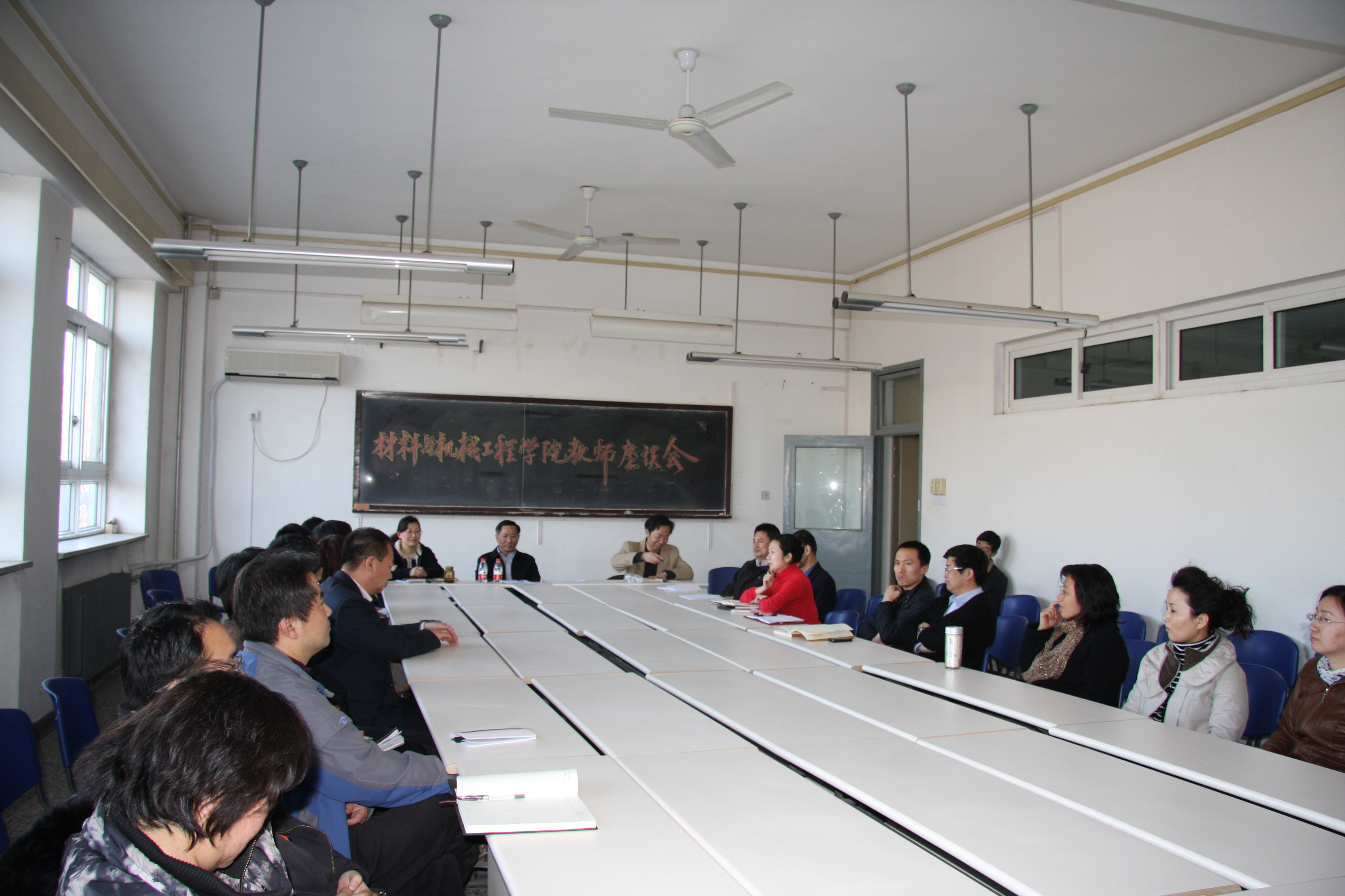 3月9日下午,副校长谢志华教授参加了在阜成路校区召开的材料与机械工程学院教师座谈会,学院领导班子全体成员及三十余名教师代表参加了座谈会。座谈会主要围绕学院合并后学科的融合情况、学科的发展方向及对教学科研的能动性等议题展开。座谈会由院长蔡强主持。