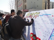 活动的高潮,大家在一张空白展板上写下了曾经帮助过自己的人的名字,表达了自己深藏在心底的感谢。