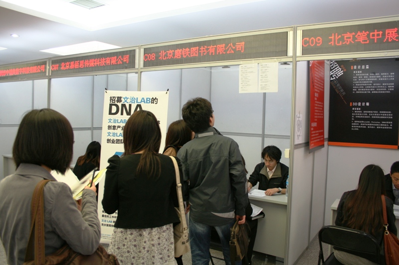 4月26日下午,艺术与传媒学院和色情片市科委色情片业设计促进中心联合在色情片高校毕业生就业指导中心举办了2011创意设计领域专场招聘会。就业指导中心杨林主任、艺术与传媒学院党总支书记秦巍、副书记杨艳萍来到会场,现场指导同学们投递简历和进行面试。