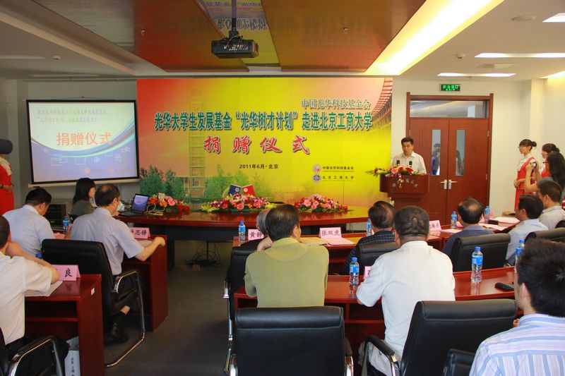 中国光华科技基金会、光华大学生发展基金副理事长谭新明先生介绍了基金会的活动内容和工作目标。他指出,光华大学生发展基金会面向当代大学生,对提升大学生综合素质,开发潜能,推进大学生素质文化传播与创新优秀青年激励等起到了积极作用。基金会对优秀和贫困大学生进行表彰、奖励和资助,创建大学生就业创业实习基地、提供创业基金促进大学生就业创业,同时支持大学生开展有益的公益活动,推进校园文化事业发展。