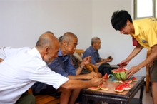 为弘扬中华民族尊老爱幼的传统美德,增强当代大学生的社会意识和国家以人为本关怀老人的号召,7月16我实践团在孙惟佳老师的带领下去石窝镇敬老院探望老人。