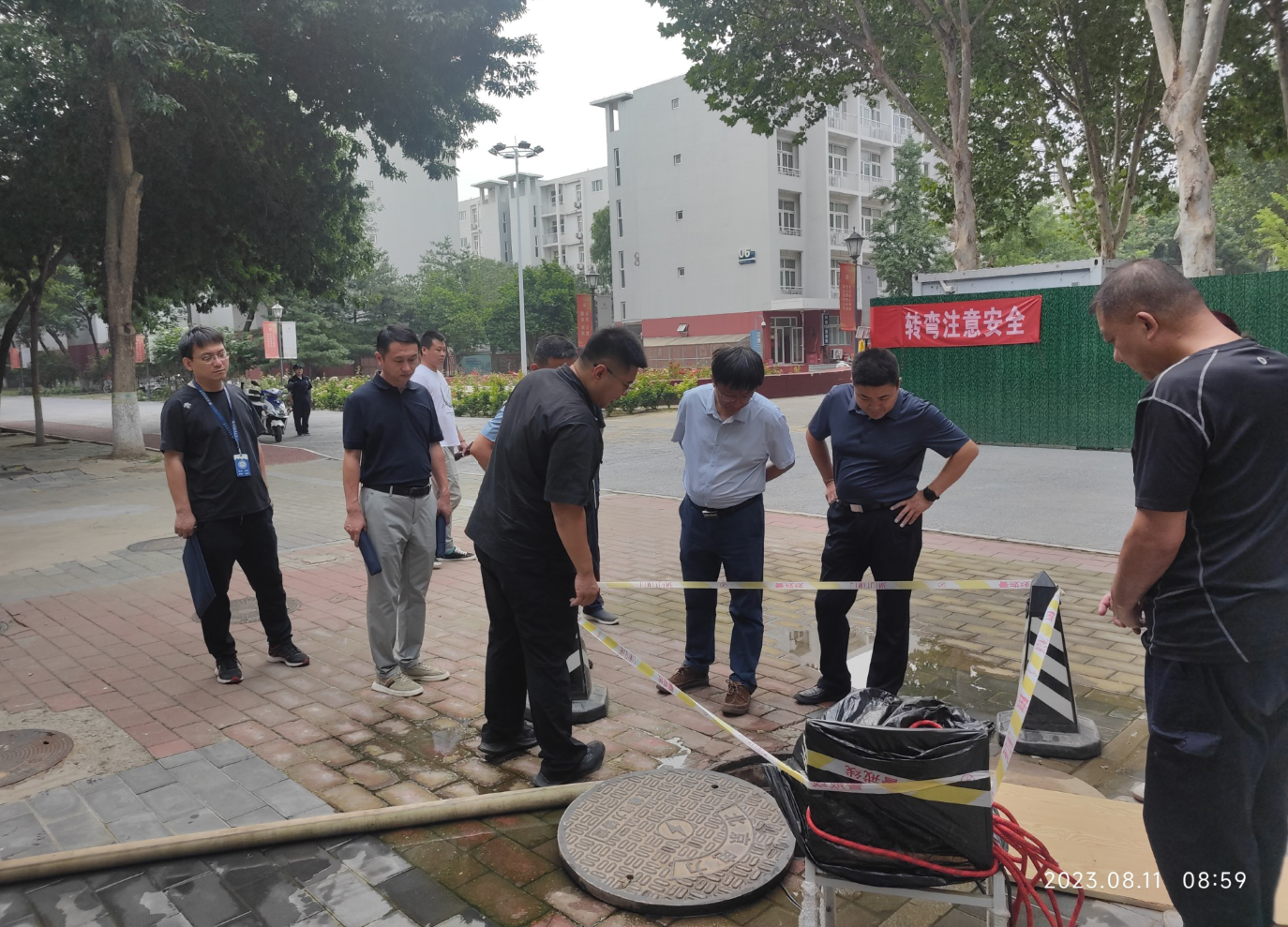 黄先开、郭建华走访检查了良乡主校区AB座教学科研楼施工现场、学生宿舍、学生食堂、校园围墙、排水管道及沿途各防汛点位,听取有关部门近期防汛工作汇报,详细了解校区风险隐患排查整治、防汛措施落实、应急物资储备等情况,结合学校实际情况做出安全防范和安全生产工作部署。