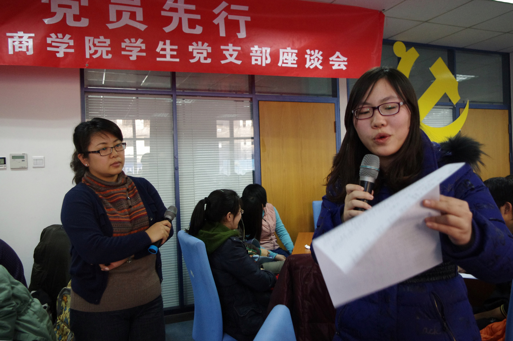 张倩介绍了学院党员整体情况、2011年度党员发展情况及活动总结、目前学院党员所存在的普遍问题、学生党员如何发挥作用等,对学院党员现状进行分析,转达了学院党总支对全体党员的要求与希望。