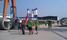 正所谓“先富带动后富”,7月12日这天,食品学院暑期社会实践团就慕名前来,参观了给韩村河带来天翻地覆巨大改变的社会主义新农村的伟大工厂——韩建集团。堆积如山的钢铁原材料、隆隆作响的大型机械、井然有序的加工车间、机械工程师的沉着指挥,在进厂房的这一瞬间,大家就感受到了韩建集团的雄厚实力。此外,这学期刚刚学习过金工实习的食品学院学员,看着这些只在书本中描述过的大型制造机械一一在眼前展现,心情都十分激动。在韩建集团技术部负责人的讲解下,实践团的同学们了解了PCCP加工的主要流程,由于缺乏专业背景,同学们对很多工业工艺都很疑惑,因此提出了许多问题,讲解员都耐心地做出解答。作为国家“南水北调”工程运输管道的生产企业,韩建集团秉承着自己的企业文化并肩负着国家赋予的伟大责任,艰苦卓绝,先后获得14项国家专利,并率先制造出了全国最大口径的PCCP管道,为国家”南水北调”工程作出了巨大的贡献。站在国家副主席习近平曾拍照留念的直径达4000mm的PCCP管前,同学们感受着科技的伟大力量,更认识到唯有创新、唯有发展才能给一个村落甚至是一个国家带来旺盛的生命力、带来繁荣与昌盛这一真谛。