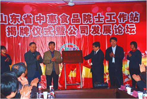 12月16日,庞国芳院士、孙宝国院士山东中惠食品有限公司院士工作站在山东惠民县举行揭牌仪式。孙宝国院士、中国食品发酵工业研究院副院长宋全厚、山东省科协秘书长陈爱国、山东省科技厅原副厅长王家利、山东省对外科技交流中心副主任祝恩元、中国生物发酵产业协会理事长石维忱、山东省滨州市副市长耿涛、滨州市科技局局长纪思彬、惠民县委书记范连生、县长李守江、山东中惠食品有限公司董事长赵吉兴以及江南大学、山东轻工业学院、山东食品发酵工业研究设计院等领导和教授出席了揭牌仪式。