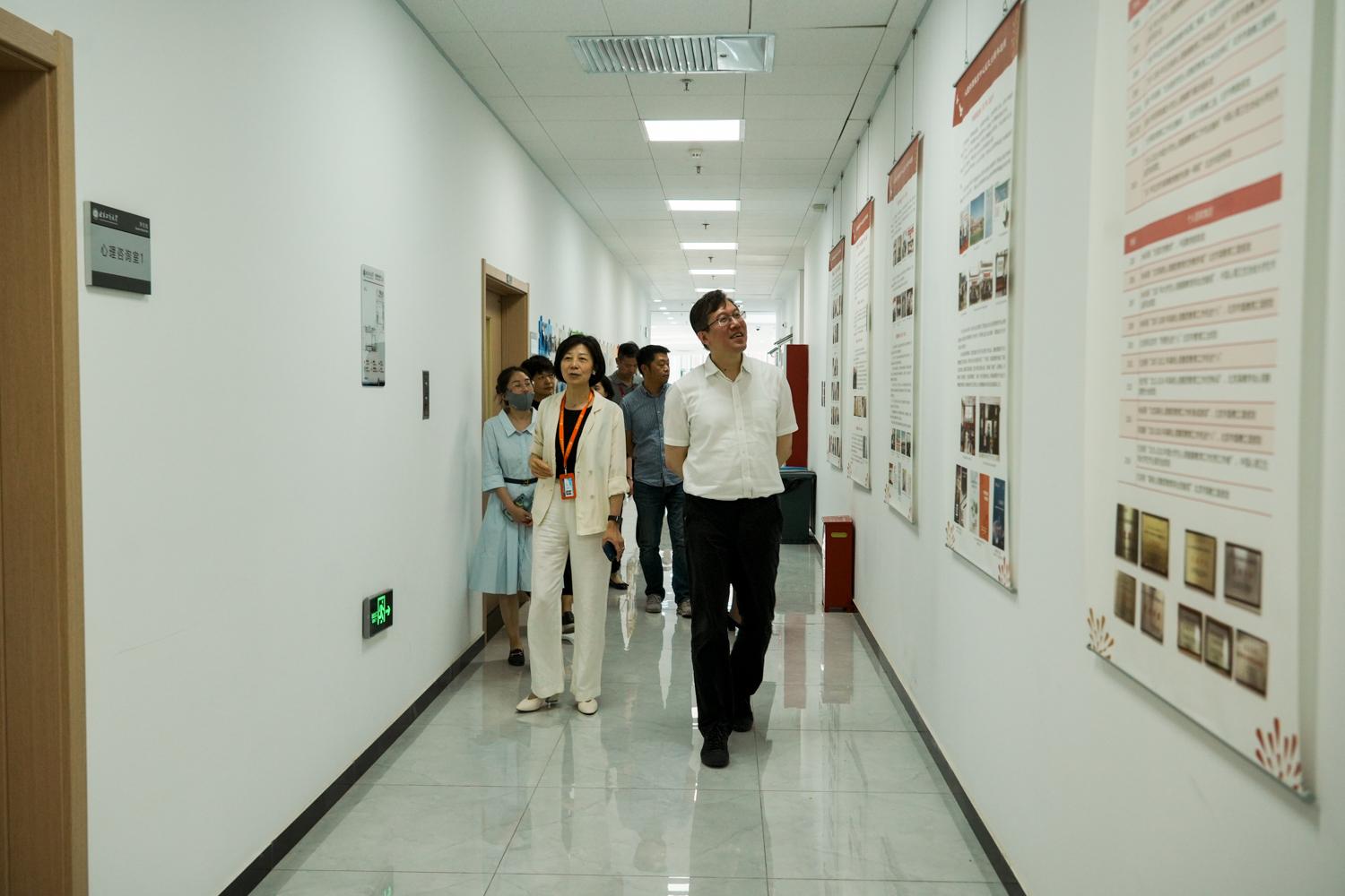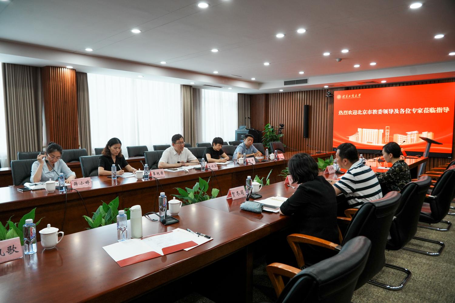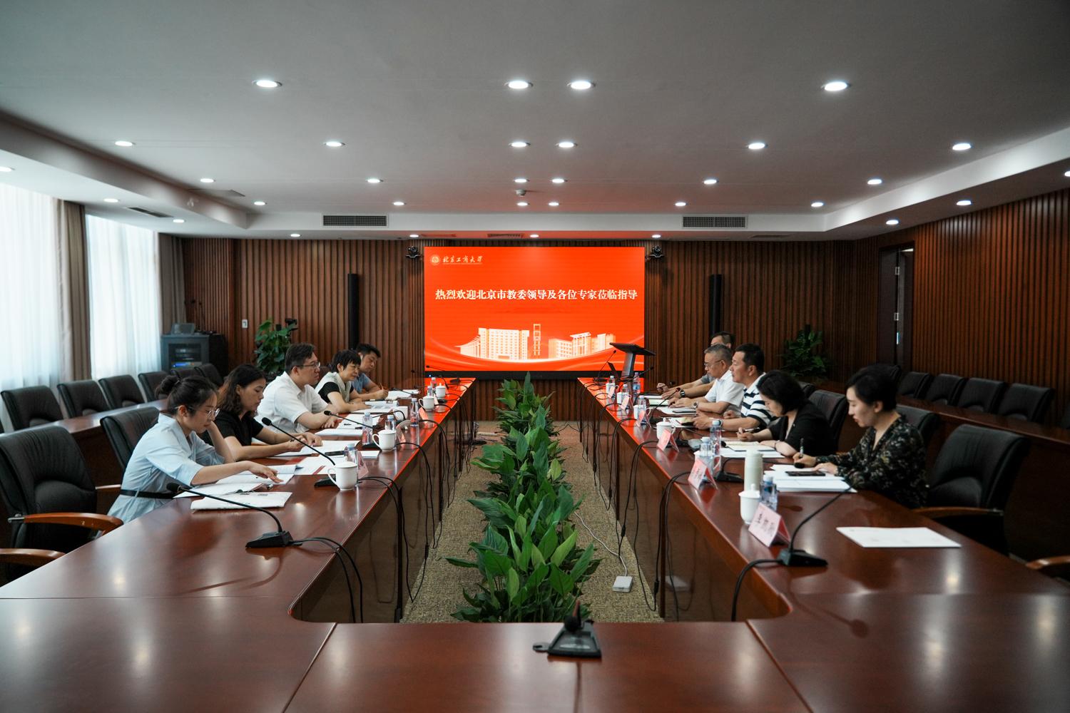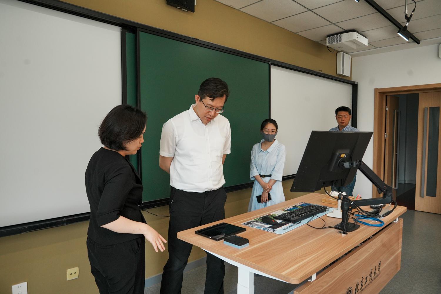 汇报会后,市教委领导和专家组一行在学校相关部门负责人的陪同下实地考察了良乡主校区文二楼智慧教室、图书馆、学生活动中心、学生食堂和宿舍。