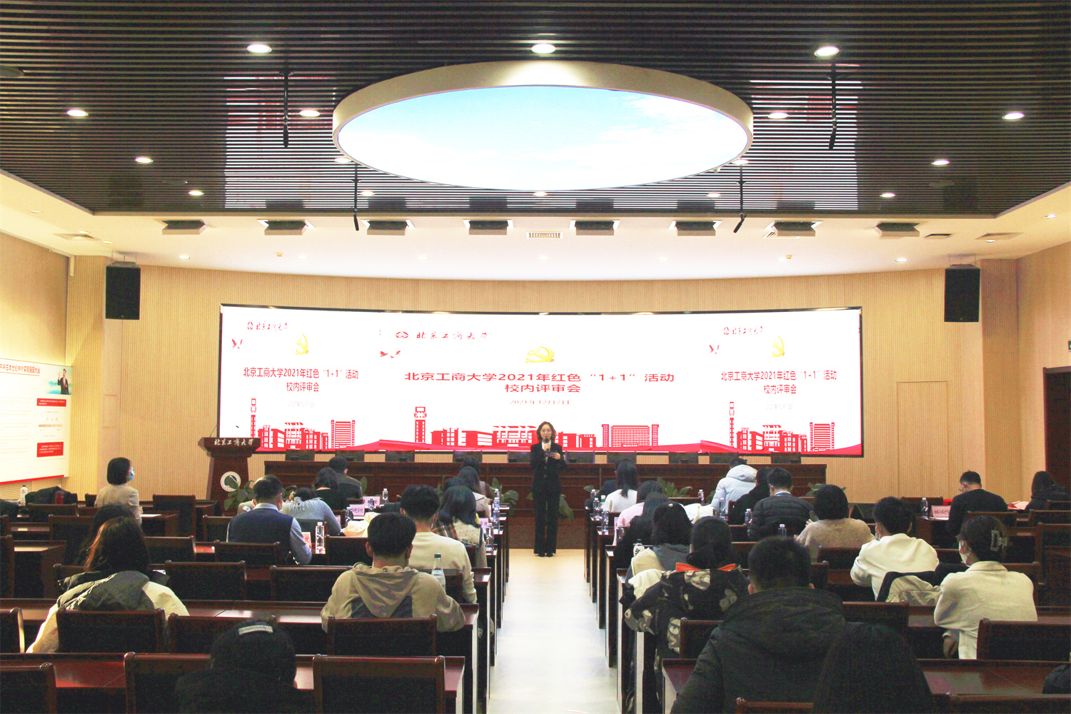 12月7日下午,2021年红色“1+1”活动校内评审会在良乡主校区举行。来自全校各学院的12个党支部参加展示和答辩,党委组织部、学生工作部、研究生工作部、团委负责人及各学院党建工作负责人担任评委。