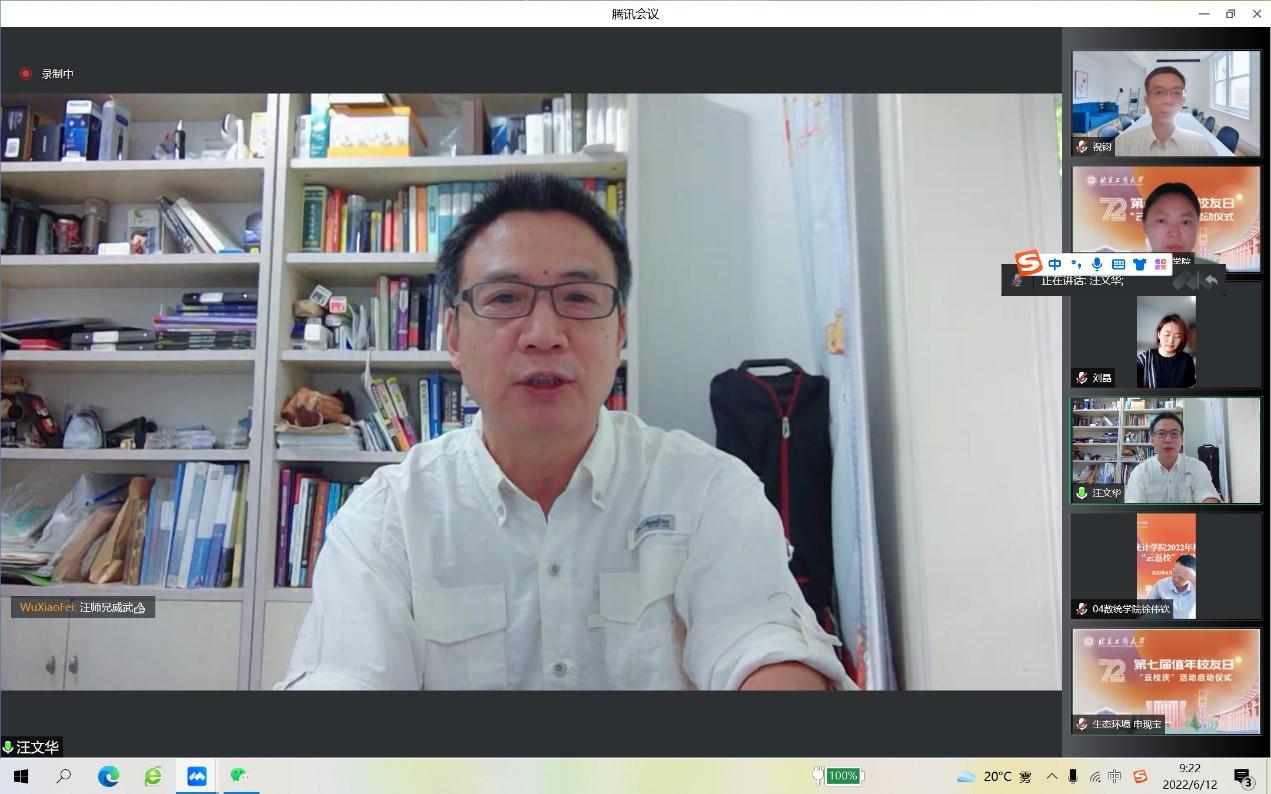 生态环境学院举办了“同心筑梦聚合力,砥砺奋进新征程”值年校友日活动,左敏出席活动,吕东燕、学院领导班子成员以及荣退、在职教师代表参加活动。活动分为云参观、云座谈和云合影三个板块。左敏详细介绍了学校的事业发展情况及迎来的历史发展机遇,并指出这些成就的获得,与校友的贡献和支持是分不开的,期待大家一如既往,继续支持学校和学院的发展。
