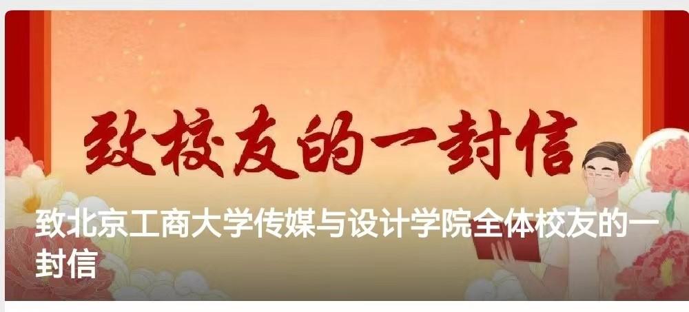 传媒与设计学院以“致学院全体校友的一封信”的形式,与广大校友一同庆祝这个属于全体北工商人的节日。在信中,学院与全体校友分享了学校和学院近年来取得的一系列喜人成绩,呼吁海内外校友永葆北工商人的精神面貌,在时代巨浪中踏浪前行,为祖国复兴、为人类文明进步作出更多更大贡献。