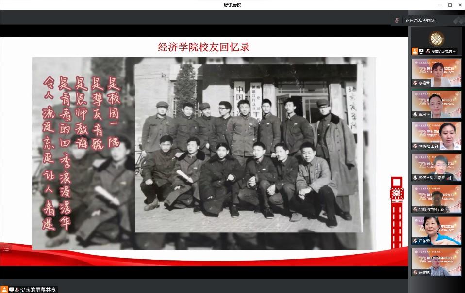 马克思主义学院以“助力谋发展,一起向未来”为主题,线上举办庆祝建校72周年校友成长经验分享会,邀请在高校、党政机关、国有企业就职的三位校友介绍成长经验,为在校研究生们提供学习、求职及职业发展相关指导和帮助。学院领导班子成员、导师代表及全体在校研究生参加了活动。