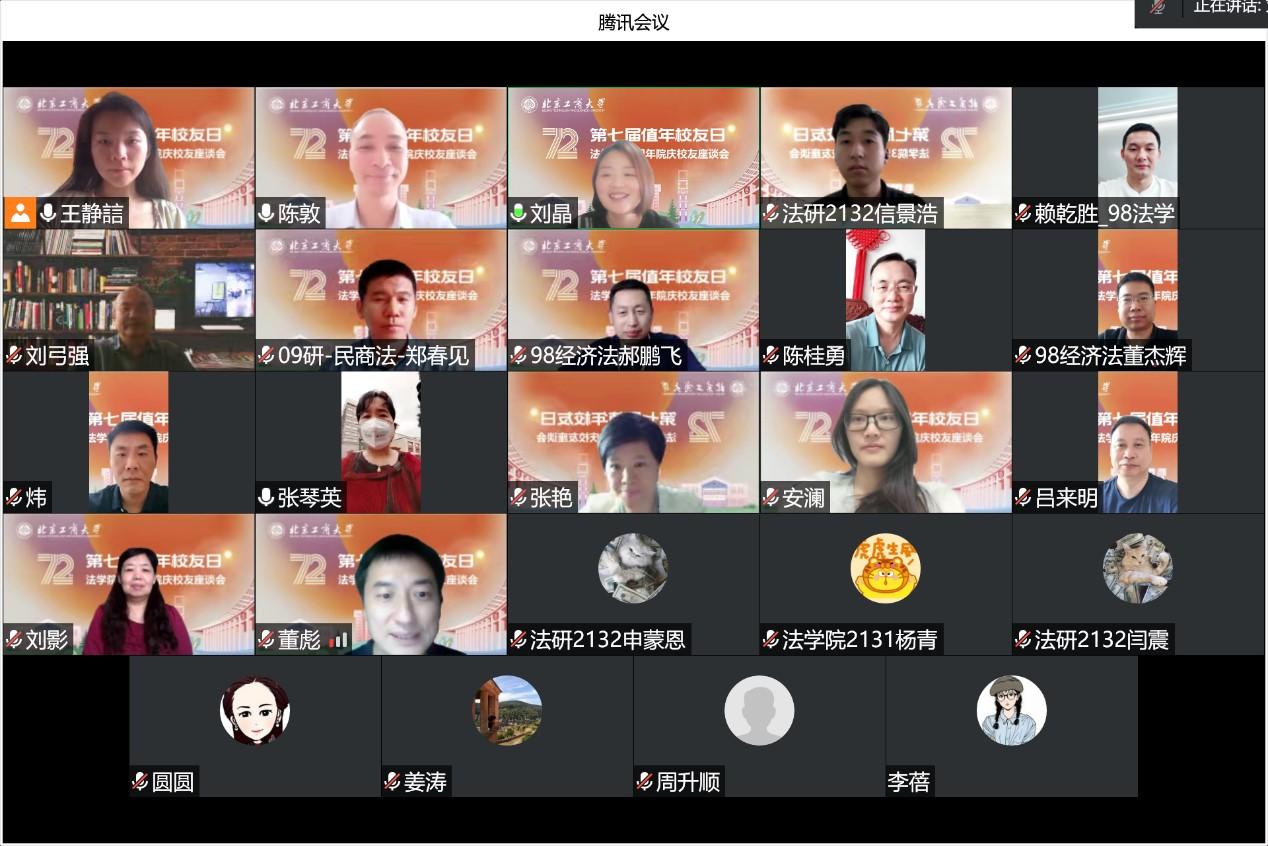 法学院以“分享成长故事,为母校发展建言献策”为主题,线上举办35周年院庆暨校友代表座谈会,邀请来自政府机关、企事业单位、律所等多个行业的校友代表齐聚一堂,共叙情谊,共谋发展。学院领导班子成员、教师代表和部分在校生等参加会议。座谈会上,校友们观看了学院宣传片,对法学院近些年来的快速发展和办学条件的改善倍感振奋。校友们回顾了自己的校园生活,分享了各自的成长经历,对学院未来发展建言献策,对学弟学妹们提出了宝贵建议。同时,各值年校友班级群里积极互动,为法学专业入选国家级一流本科专业建设纷纷点赞。