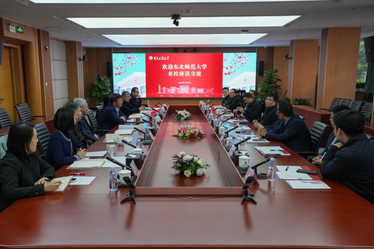 11月5日上午,东北师范大学党委书记李忠军,党委副书记、校长徐海阳,党委副书记兼副校长常青,党委副书记庞立生等一行到我校调研,围绕突出特色学科建设、强化人才队伍建设、深入开展有组织科研等主题进行座谈交流。学校党委副书记、校长郭建华,党委副书记李中奇、宋晓欣,党委常委、副校长邓祥征及相关部门负责人出席座谈会。