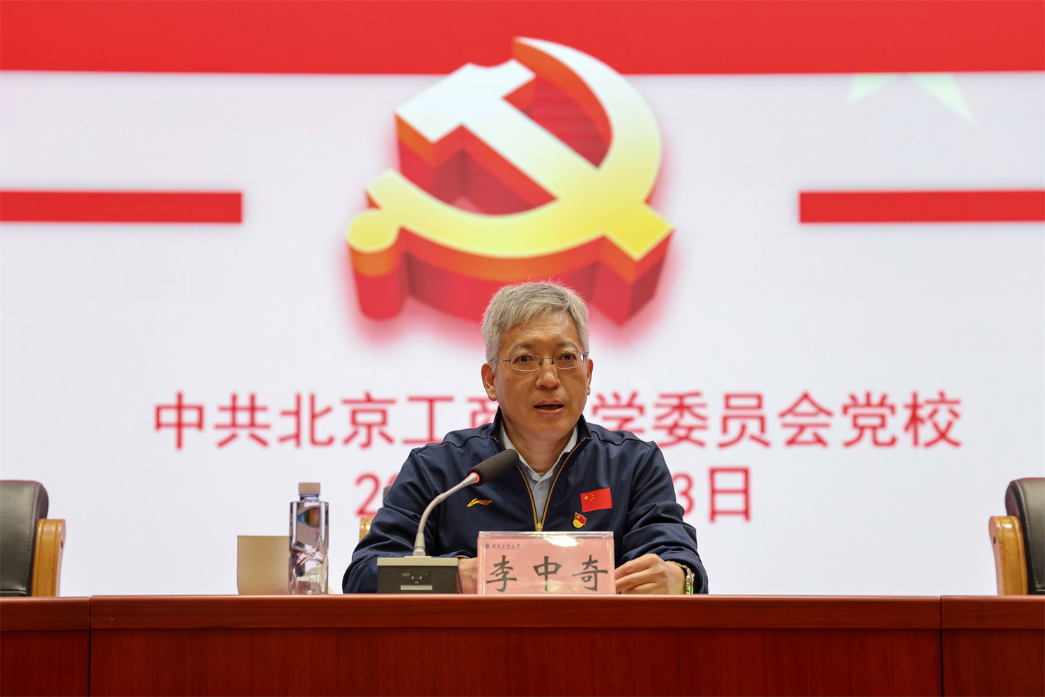 李中奇作开班动员讲话。他对各位学员成为党员发展对象表示祝贺,随后从“端正入党动机,坚定理想信念”、“落实主题教育要求,认真学习贯彻习近平新时代中国特色社会主义思想”、“把握新时代机遇,弘扬北工商精神”三个方面对全体学员提出要求和希望。他表示,各位发展对象不仅要从组织上入党,更要从思想上真正入党,做到知行合一,笃行不怠,不仅要做北工商学子中的佼佼者,更要为新时代中国特色社会主义事业贡献青春力量。