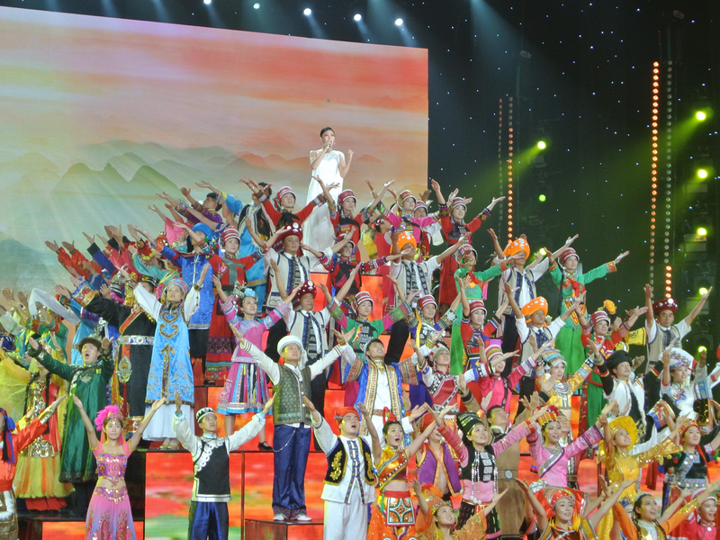 同学们用欢快热烈的歌声唱响《共圆中国梦》和《中国之梦》,拉开了晚会的帷幕。身着各民族服饰的工商学子在《天耀中华》庄严的歌声中手牵着手、肩并着肩,正如神州大地上不同民族的人民正在为同一个中国梦努力奋斗,伴随着《共筑中国梦》与《美丽中国进行曲》的音乐齐头并进。