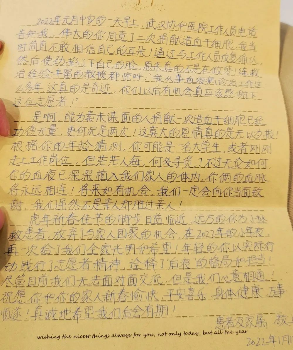 李明的善举,两度托起了一个家庭的希望,怀着感恩之情,受助者的爱人两次为李明手写感谢信,表达了全家人对李明的感谢和祝福:“年轻的你以实际行动践行了志愿者精神,诠释了‘后浪’的格局和担当!”