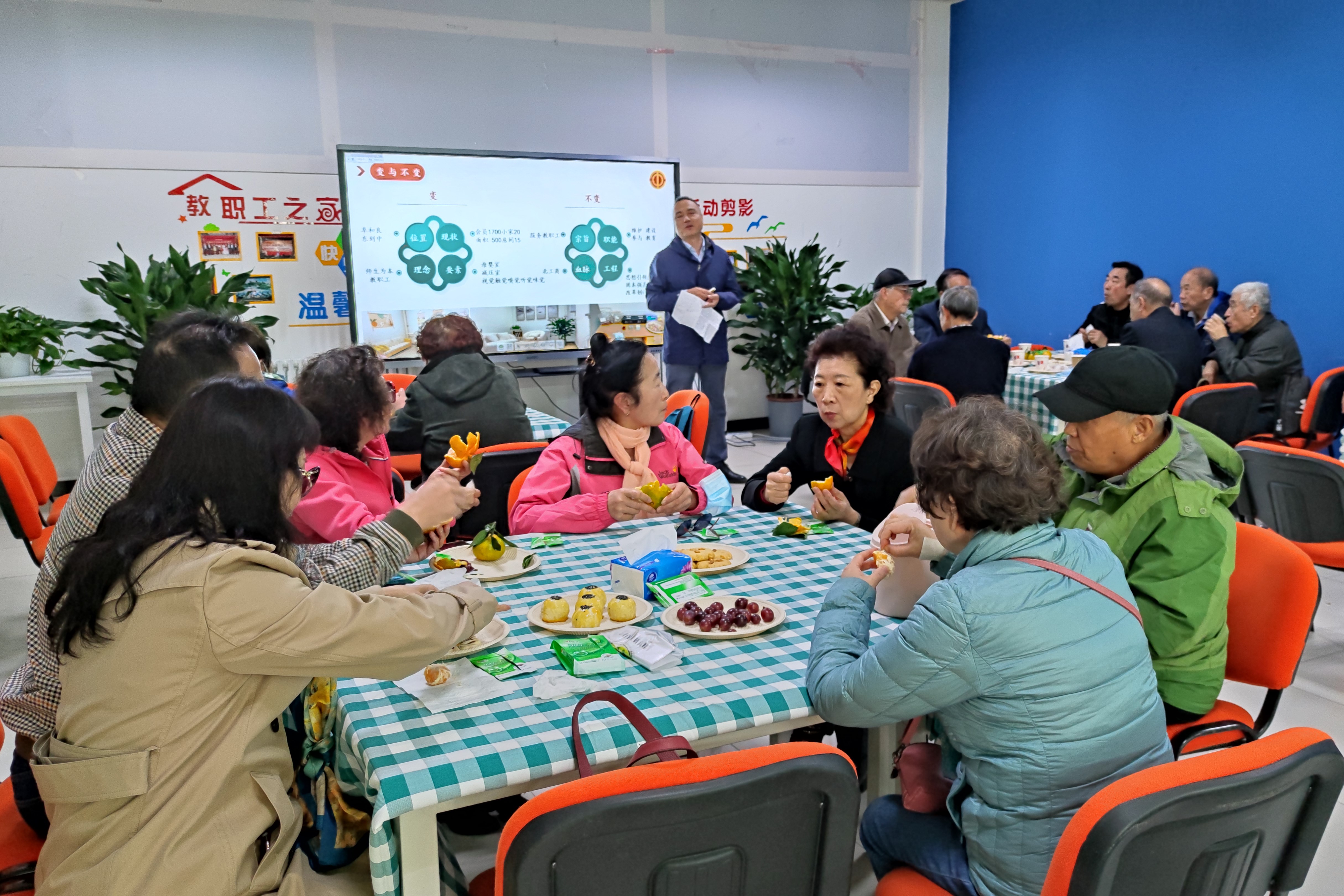 离退休教职工校情通报会前,学校组织离退休老同志在良乡主校区参观了图书馆、校史馆、智慧教室、数学与统计学院楼、教职工之家以及新学生活动中心等,亲身感受良乡新校区的发展变化。在校史馆,老同志们通过大量记录岁月的图片和实物,回顾过去七十多年来学校光辉发展历程,感受着学校改革发展的巨大变化,赞叹几代北工商人自强不息、艰苦奋斗取得的辉煌成就。在文二楼,老同志们参观了全新亮相的智慧教室,全新的智慧教室秉承了“智教融合”的建设理念,突出了“工商融合”的设计思路,打造了“智能简约”的教室环境,融入了“温馨人文”的设计细节,为师生提供更加全新智能的沉浸式体验。老同志参观了良乡教职工之家,刚刚改造后的教职工之家集办公研讨、互动交流、休闲娱乐于一体,设有工作室、休闲室、文创活动室、心理减压室、母婴室等,教职工在工作之余不仅可以强身健体,放松身心,享受丰富多彩的休闲生活,还提供心理健康支持服务。