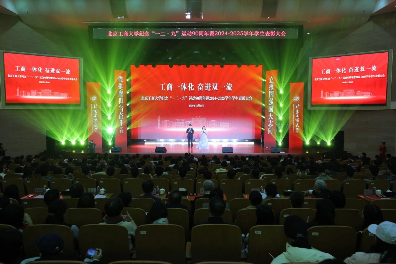 大会在首部校史舞台剧《炬火相传:青春的誓言》中拉开帷幕。该剧以北工商的红色校史为依托,以老校长姚依林为精神符号,艺术化地再现了“一二·九”运动中的真实历史瞬间,以实际行动践行着“请党放心,强国有我”的青春誓言,描绘出北工商青年弘扬伟大抗战精神、与工商共成长、与祖国同奋进的动人图景。这份跨越九十年的青春热血与爱国赤诚,引发全场强烈情感共鸣,掌声经久不息。
