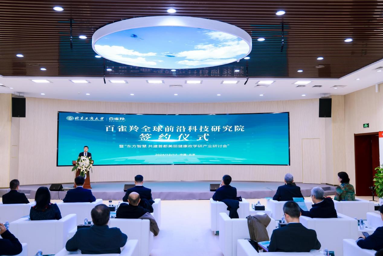 12月17日,学校举行百雀羚全球前沿科技研究院签约仪式暨“东方智慧 共建首都美丽健康政学研产业研讨会”。
