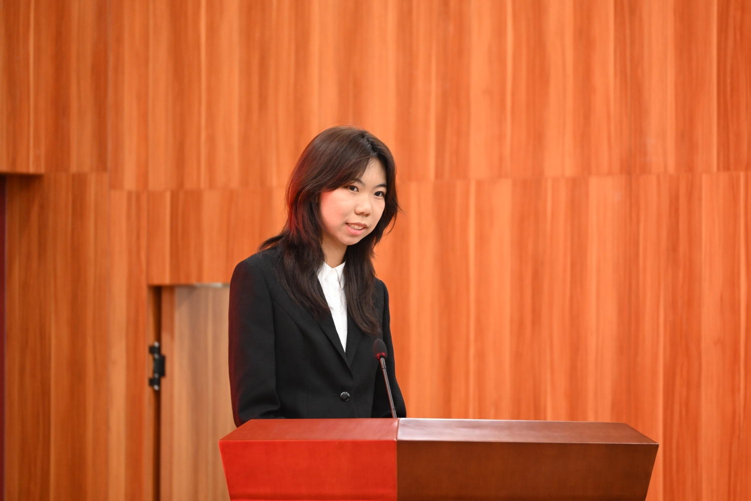 在座谈交流环节,国际班学生代表李沛芷、王锡平依次上台,分享他们在国际班的学习生活点滴,讲述了在大学生活中如何克服困难、不断成长,展现了国际班学生积极向上的精神风貌。