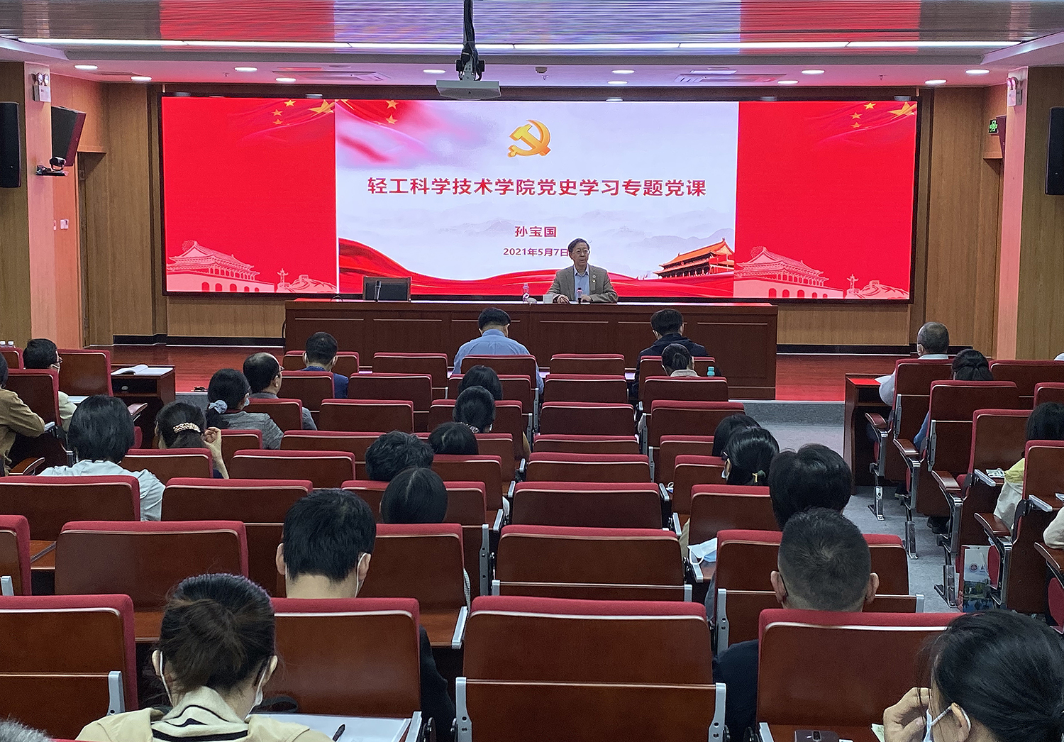 5月7日,党委副书记、校长孙宝国院士为轻工科学技术学院全体教师讲授党课。党委组织部副部长郑光参加学习,党课由学院党委书记郑福平主持。