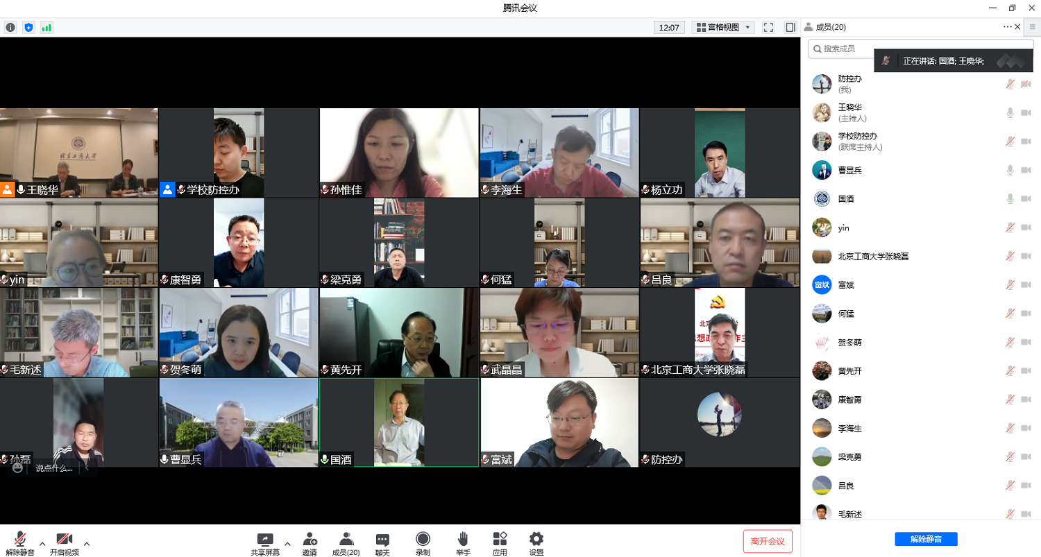 学校办公室主任王晓华传达了蔡奇书记在疫情防控工作会议上的讲话精神,结合学校临时管控期间工作,汇报了校领导在阜成路校区检查疫情防控工作、慰问在岗教职工情况,同时汇报了学校临时管控区内核酸检测情况,并就当前存在的问题进行了梳理和分析。
