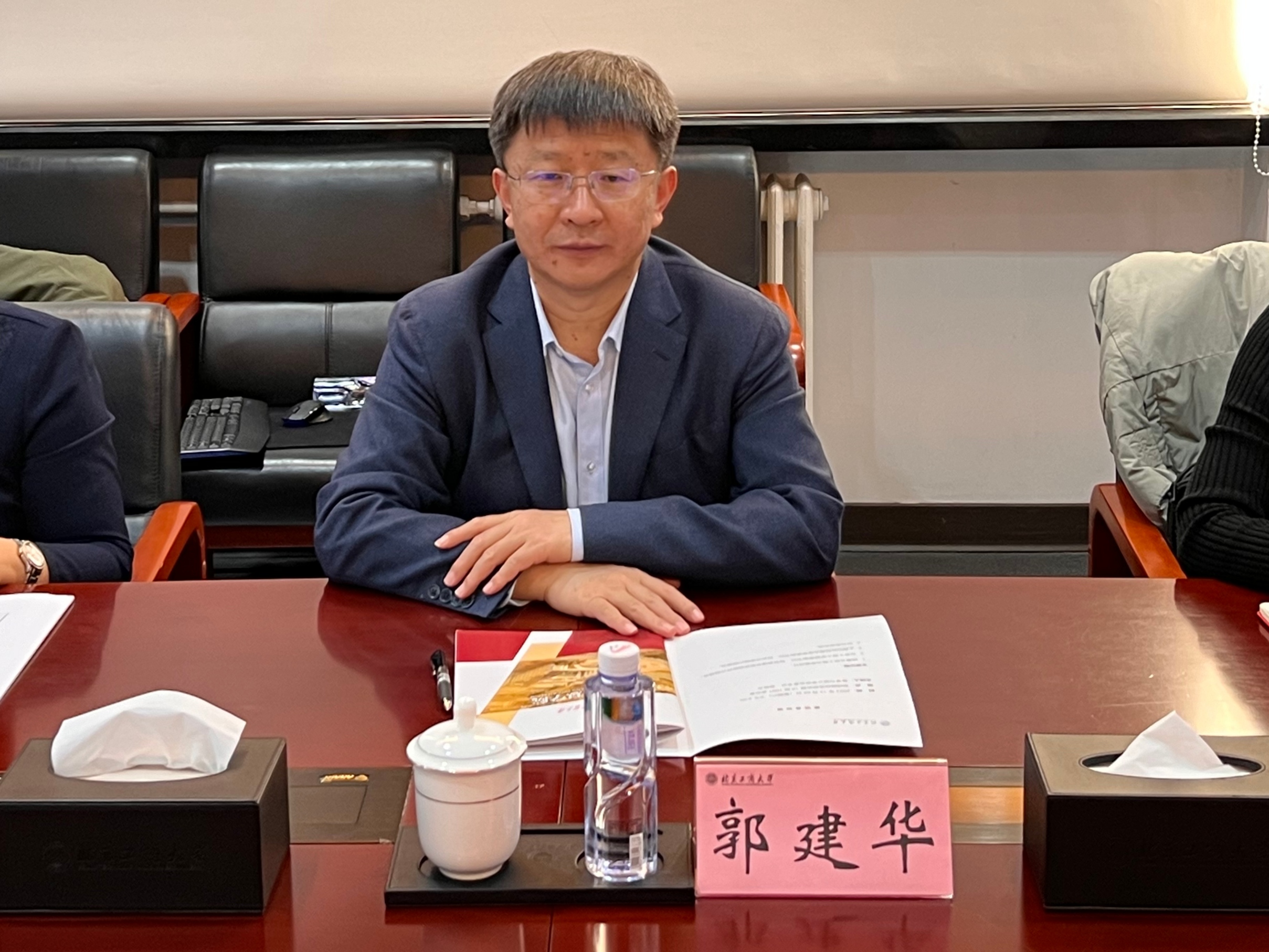 郭建华代表学校对上海对外经贸大学一行的到来表示热烈欢迎,并介绍了学校的历史沿革、目标定位,以及近年来学校在人才培养、学科建设、科学研究、社会服务等方面取得的成绩。他指出,学校紧密围绕高水平研究型大学建设这一主线;全面落实良乡主校区及阜成路校区两校区发展规划;加快推进发展定位向服务国家和首都经济社会发展转型、办学方向建设高水平研究型大学转型、教育模式向教育数字化转型三大转型;稳步推进经管学部、轻工与食品学部、数据科学与人工智能学部以及人文社科学部四个学部改革。希望两校相互支持、荣辱与共,推动实现共同进步。