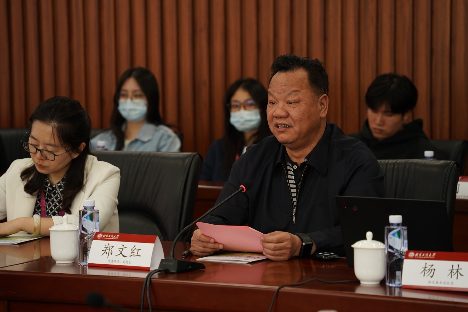 “校区对接”工作座谈会在良乡主校区举办。会上,郑文红介绍了学校的发展历史与办学特色等基本情况,并对市人力社保系统和市就业促进中心的支持和帮助表示感谢。丁玎表示人社局将与学校同向同行,将政策、岗位、信息、指导、培训送进校园,多样化服务形式,与学校形成合力助力毕业生早就业、就好业。