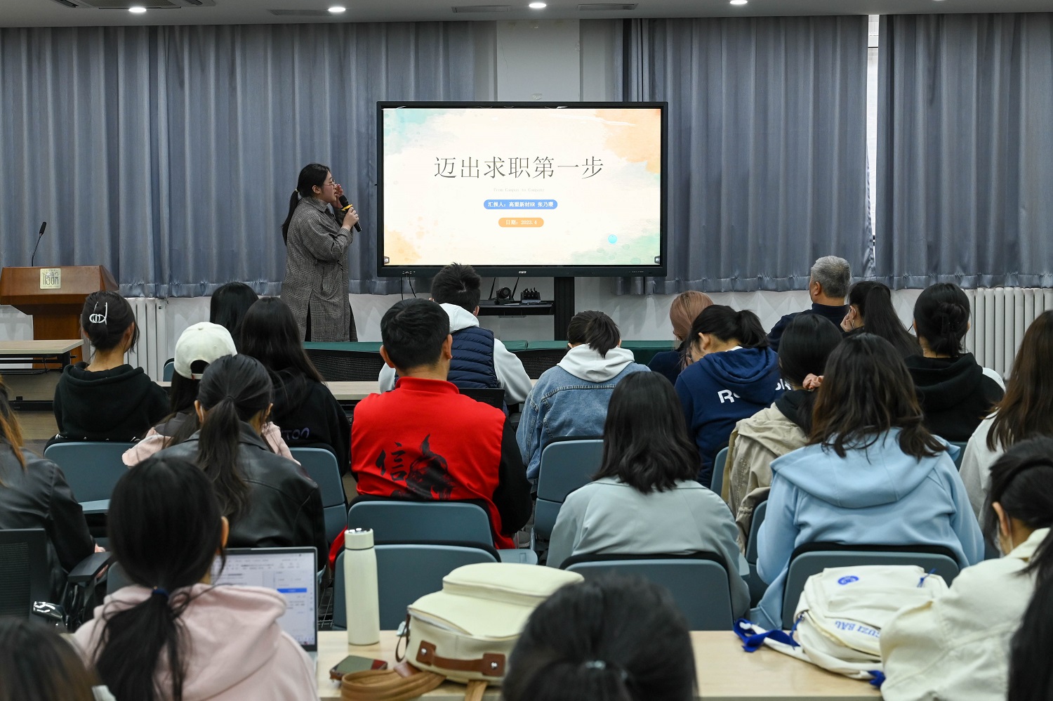 “人社局长进校园”活动在良乡主校区举办。房山区人力资源与社会保障局副局长卢祥以《志存高远,厚积薄发;绽放理想,成就未来》为题开展了政策宣讲。色情片高盟新材料股份有限公司人力资源主管张乃璎以《如何迈出求职第一步》为题进行了就业指导主题分享。