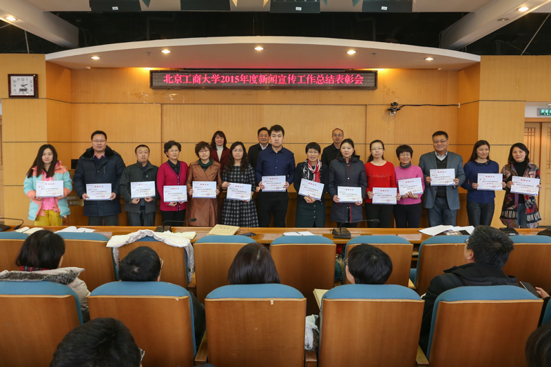 1月21日,学校在阜成路校区召开新闻宣传工作总结表彰会,总结2015年学校新闻宣传工作,表彰先进单位和个人。党委副书记张德玉出席会议并讲话。各单位新闻宣传工作负责人、通讯员等参加了会议。会议由党委宣传部副部长褚财宽主持。