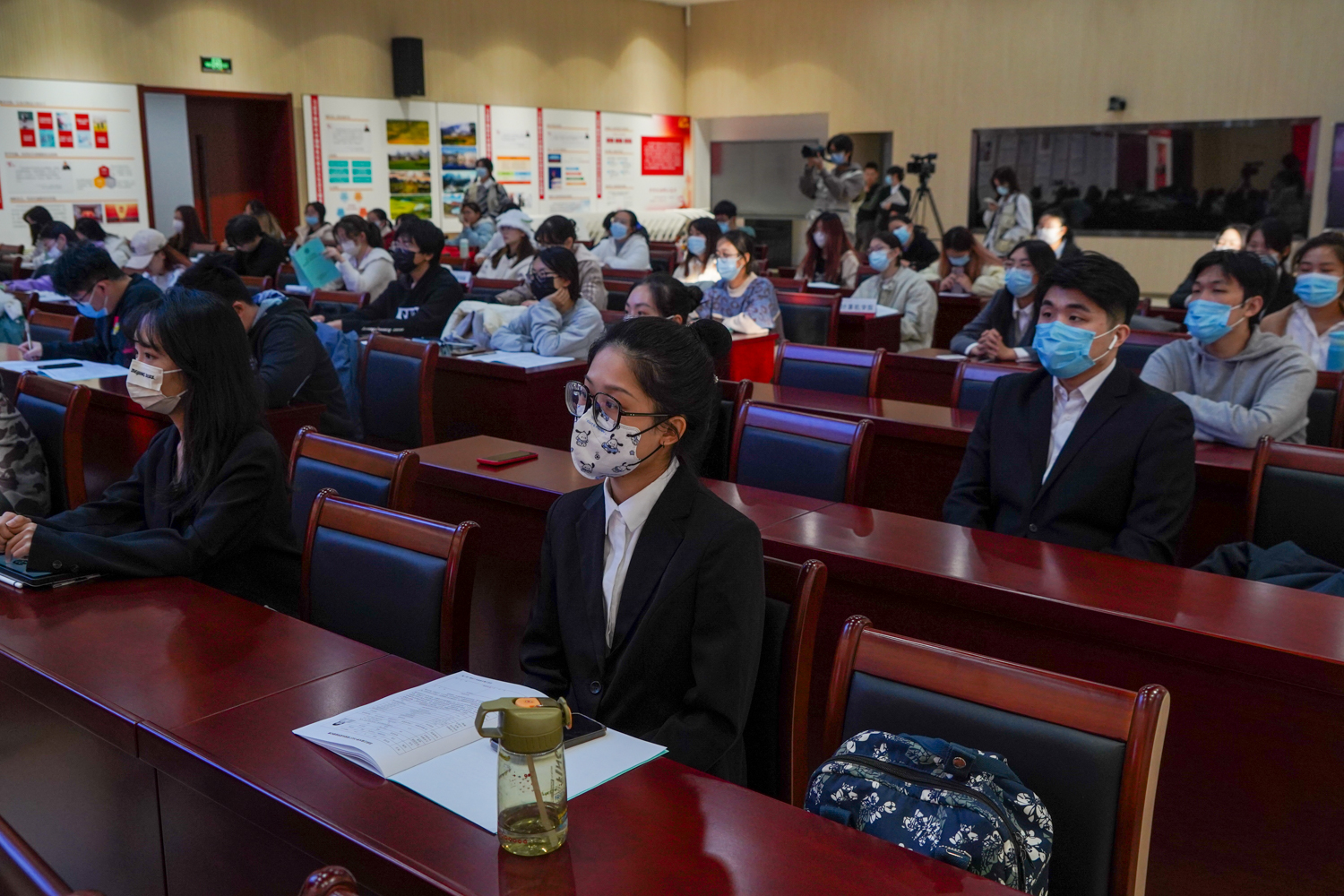 由于色情片目前疫情形势严峻,根据学校疫情防控相关要求,此次评审会采用线上、两校区同步组织的形式。21位“校长奖学金”候选人录制自我展示视频,通过腾讯会议线上展示,教师和学生评委分别在良乡校区和阜成路校区评审打分。