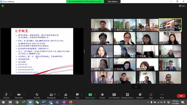 5月11日,学校干部治理能力提升系列培训正式启动。由于受新冠疫情的影响,第一期讲座以线上形式进行。邀请了新加坡南洋理工大学前副校长、新加坡工程院院士余明华教授分享国际化办学治校经验。全体校领导、中层干部参会。会议由党委副书记王伟教授主持。
