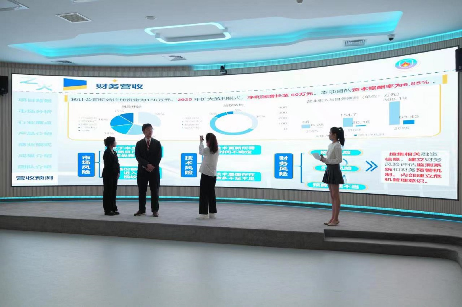 此次大赛共112支团队报名参赛,经过一个多月的初赛及复赛,最终选拔出10支队伍参加决赛。决赛过程紧张而激烈,同学展示出了创新创业的激情与活力。“微风干燥”团队自主研发中小型智能家商两用果蔬微波干燥机,跟随政策引领,助力乡村振兴。“之火”团队打造了一款高精度、高范围、高量程的热成像火情预报警系统,具有精准预测、及时报警、联网分析及迅速灭火的优势。“净解之材”团队自主研发新型可降解材料改性技术,旨在助推“双碳”目标。“肥常靠谱”团队自主研发缓释多功能复合益生菌剂,助力“减肥减药”。“折子语”团队自主研发小语种端到端声学模型,旨在争做小语种自动语音识别先行者。“梦想守护者”团队,旨在打造一个面向乡村儿童的多元化素质教育体系,助推乡村素质教育行业的发展。路演过程精彩纷呈,团队同学在台上大展风采,亲友团们在台下积极现场互动,还有些团队带来了自己的产品让现场的老师同学们品鉴。