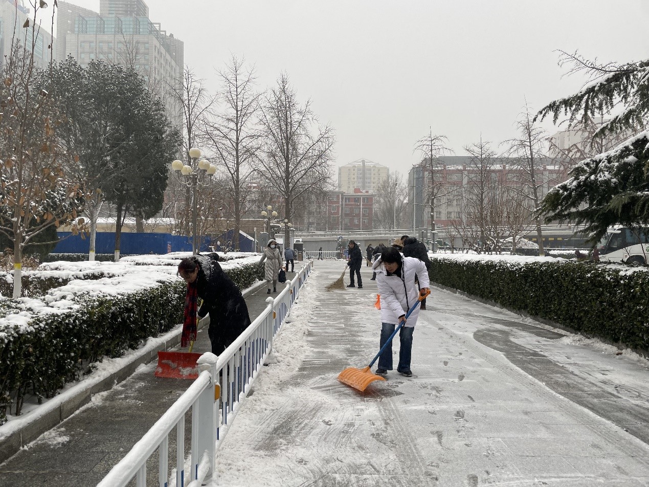 连日来,全市迎来强降雪和寒潮天气。为最大限度减少冰雪天气对师生出行和教学秩序带来的不利影响,学校提前研判、迅速部署,于12月14日上午组织阜成路校区在岗机关干部投入清理冰雪一线。