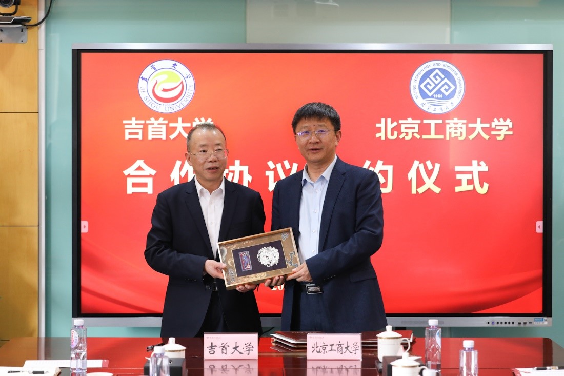 双方共同观看了我校宣传片。郭建华代表学校对黎奇升一行来访表示欢迎,介绍了学校的历史沿革、发展现状与奋斗目标,重点阐述了学校为加快创建“双一流”学科、全面建设高水平研究型大学作出的努力和取得的成效。他表示,近年来,学校锚定高水平研究型大学办学定位,聚焦国家和首都经济社会发展所需,按照“商科做强、工科做精、工商融合、双轮驱动”的建设思路,不断深化教育教学数字化转型,以数据科学与人工智能为链接,以人文社科为支撑,探索实施商科与工科主动对接、深度融合的方法和路径,努力推动形成全校上下一盘棋的发展局面。吉首大学作为湖南省高水平建设大学、湖南省“双一流”建设高校,在数学、旅游管理、轻工、食品等方面具有突出优势,双方具有较大合作空间和潜力。希望两校以此次合作签约为契机,深化全方位、多领域合作,推动两校共同发展、共赢未来,为高等教育强国建设贡献更大力量。