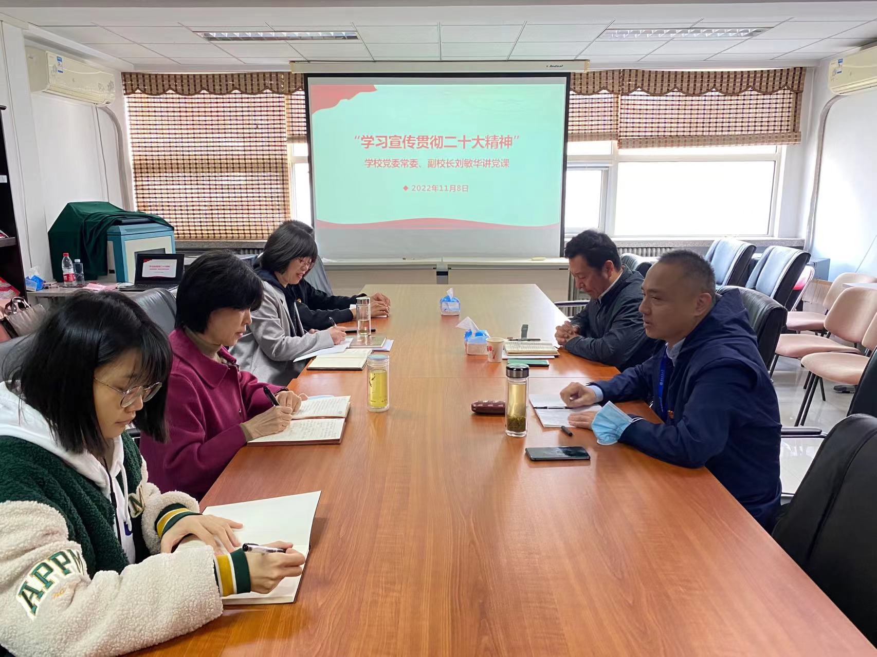 11月8日上午,学校党委常委、副校长刘敏华以“学习宣传贯彻党的二十大精神”为主题讲授专题党课,工会全体人员参加学习。党课由工会党支部书记杜亚辉主持。