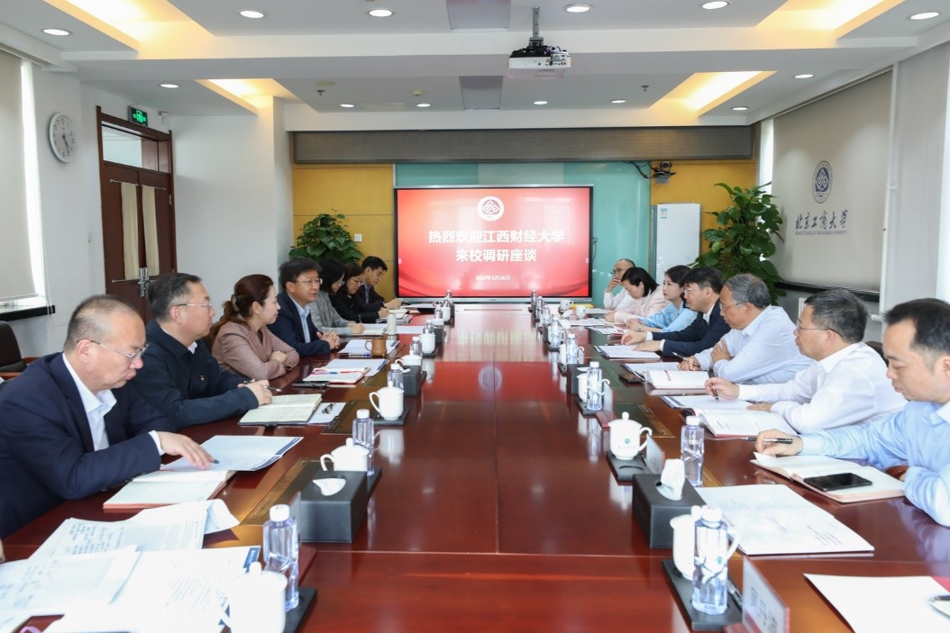 4月10日,江西财经大学校长邓辉,党委常委、副校长阙善栋一行到学校开展调研交流。学校党委副书记、校长郭建华,党委常委、副校长徐丹丹出席座谈会。双方相关职能部门负责同志参加会议,会议由徐丹丹主持。